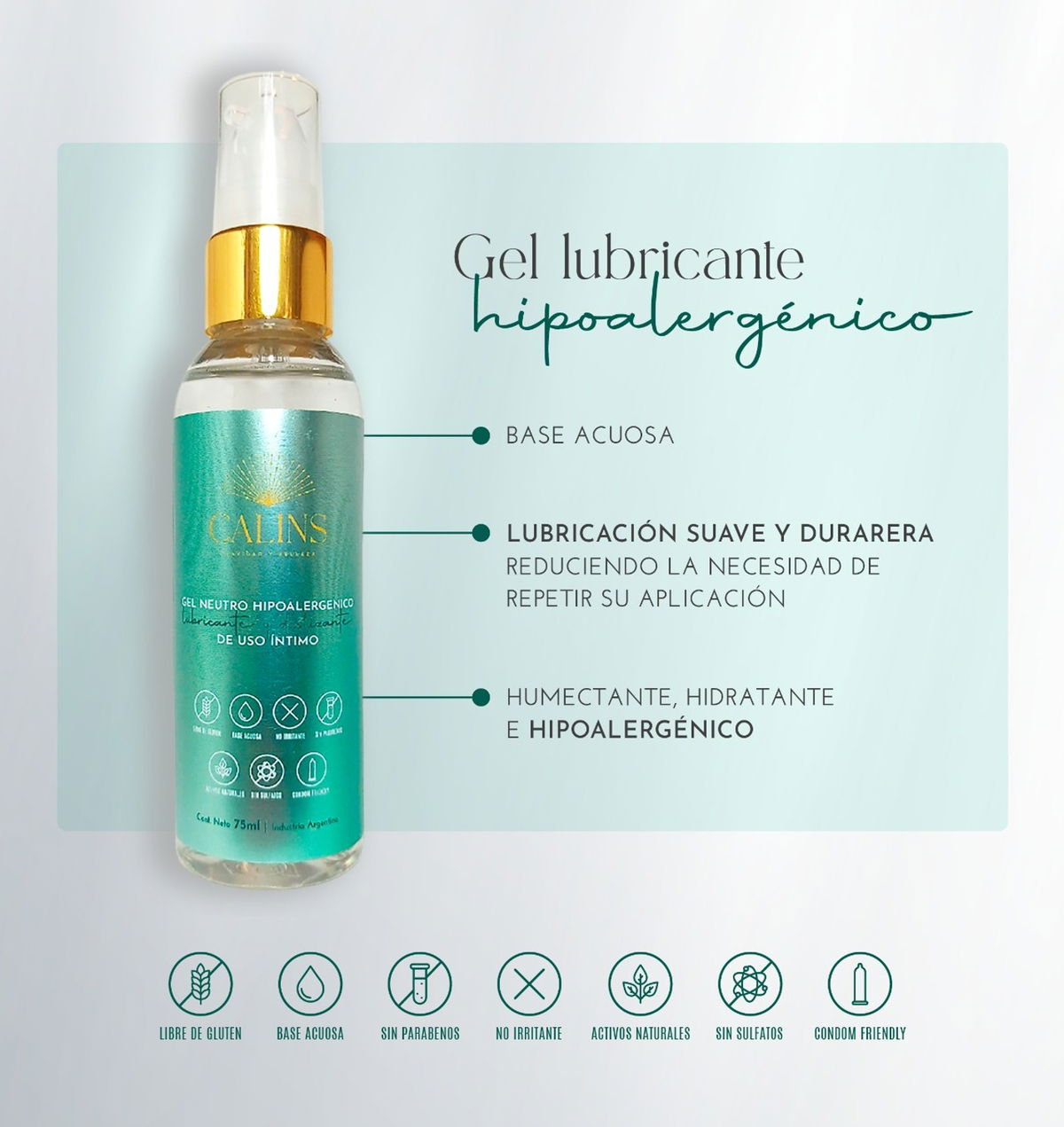 Gel Lubricante Hipoalergénico LUBRICANTE Y SEDOSO Gel lubricante íntimo de base acuosa humectante, hidratante, Hipoalergénico y libre de gluten. Su lubricación es duradera, suave y aterciopelada logrando una lubricación de alta calidad reduciendo la necesidad de repetir su aplicación. - Libre de Gluten - Base Acuosa - No irritante - Sin Parabenos - Activos Naturales - Sin Sulfatos - Compatible con preservativos