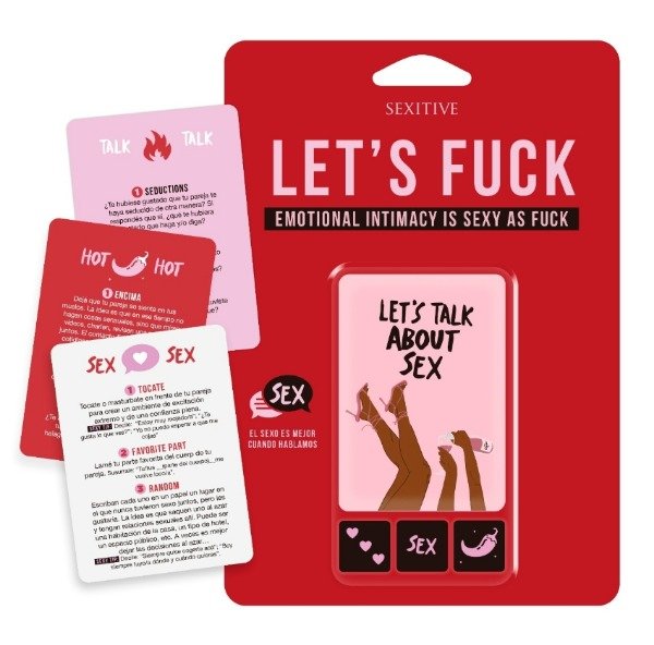 Let’s Fuck es un juego pensado para dos personas que transforma la comunicación y el deseo en una experiencia intensa y divertida. Combinando cartas y dados, invita a profundizar la intimidad desde el lenguaje, el cuerpo y la conexión emocional.