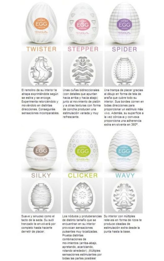 ✓7 x 5 cm ?TENGA EGG incluye lubricante? Un huevo con una sorpresa dentro! Se ajustan a cualquier tamaño son súper elásticos y te harán sentir sensaciones totalmente nuevas. El interior está fabricado en elastómero, su tacto es suave y húmedo. Hay seis modelos con seis interiores diferentes, con diferentes texturas. Todas ellas te envolverán de placer. TENGA EGG, dentro de su envoltorio, contiene una bolsita con lubricante para que la experiencia sea suave y placentera.