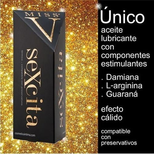 ????Aceite para lubricación intima. Único aceite lubricante con componentes estimulantes como L-arginina, Damiana y Guaraná. Beneficios: Esimulante / excitante. Térmico, con un agradable efecto cálido tanto en la piel como en los labios. Lubricante íntimo. No mancha, no deja residuos. Es hidrosoluble, compatible con el uso de preservativos.