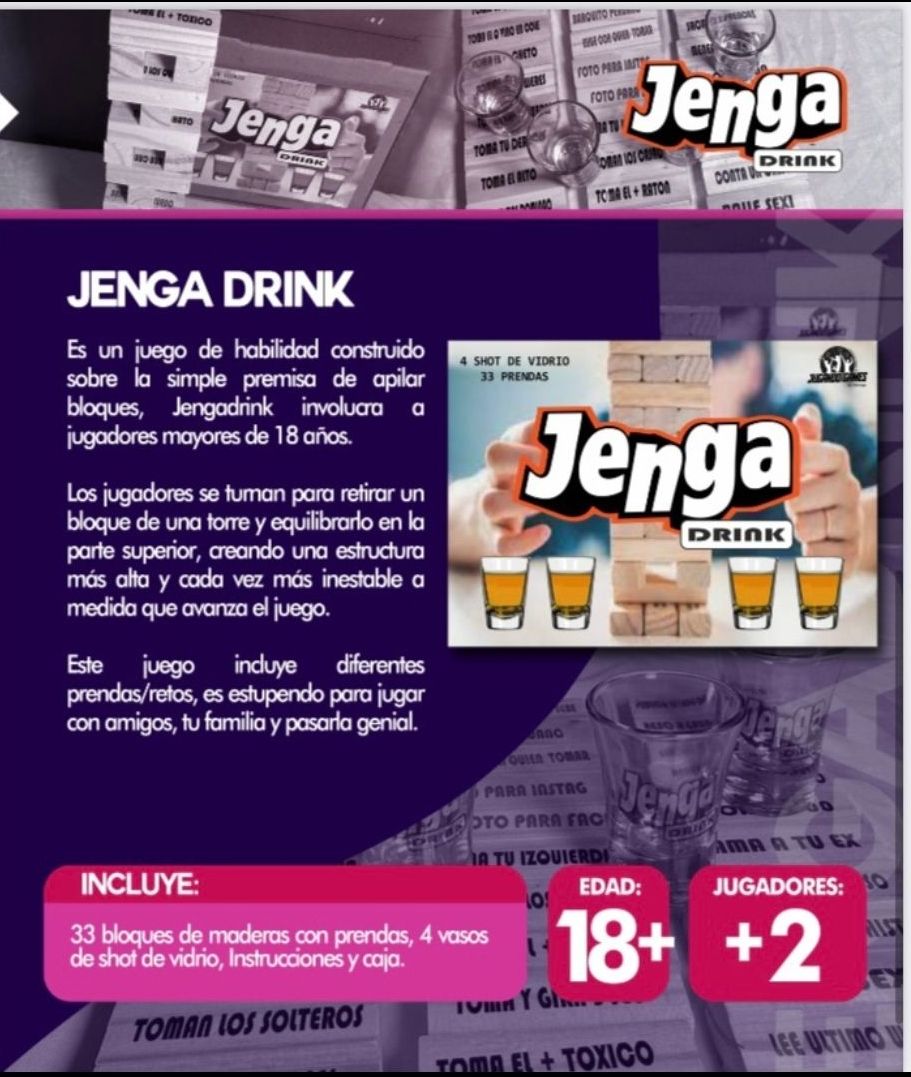 *Incluye 33 prendas/retos individuales y grupales* 4 Shot de vidrio * Instrucciones * Caja