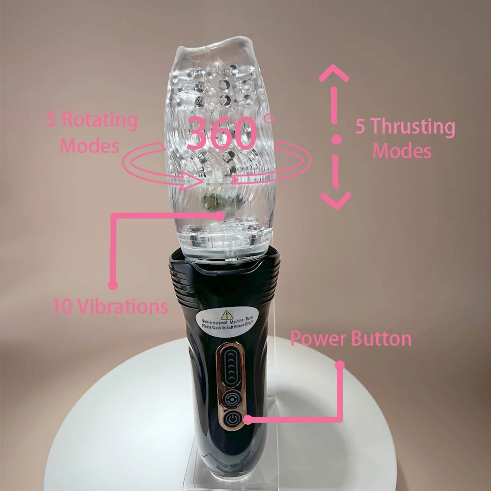 El vibrador masculino giratorio con movimiento vertical fue diseñado pensando en el bienestar de los hombres que disfrutan de aumentar su placer con juguetes innovadores. Promete ayudarte a alcanzar el orgasmo más rápido.